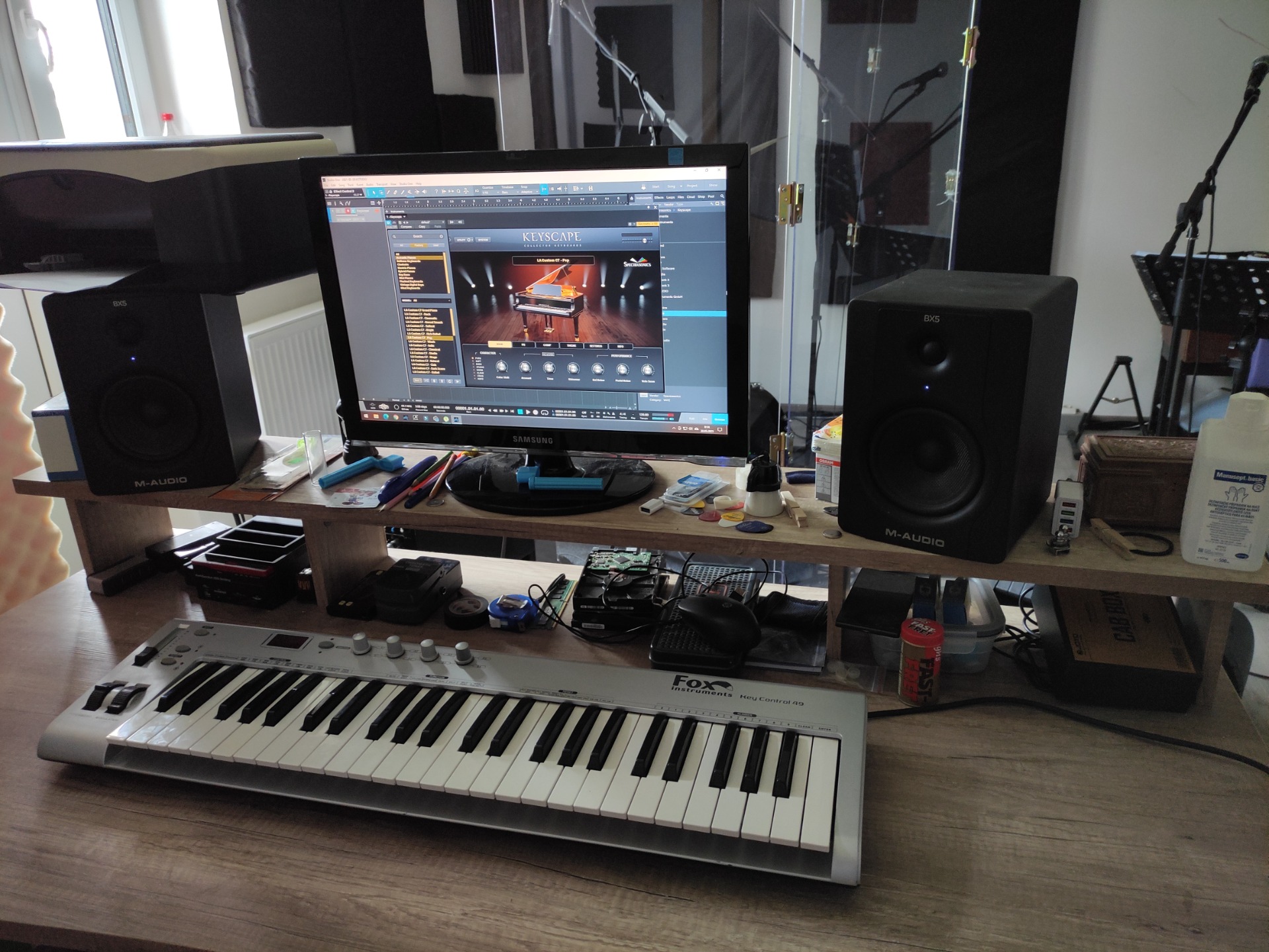 Používáme primárně kvalitní AD převodník od společnosti Steinberg, umožňující zaznamenávat v 24-bit/192 kHz, v záloze máme Tascam. Pro fajnkšmekry máme Reel-to-Reel tape deck AKAI ve spojení s pultem Soundcraft pro čistě analogovou cestu. Videonahrávky vznikají na digitální zrcadlovky značky Canon. K dispozici máme také spoustu různých mikrofonů, paliček, strun, trsátek apod :-)